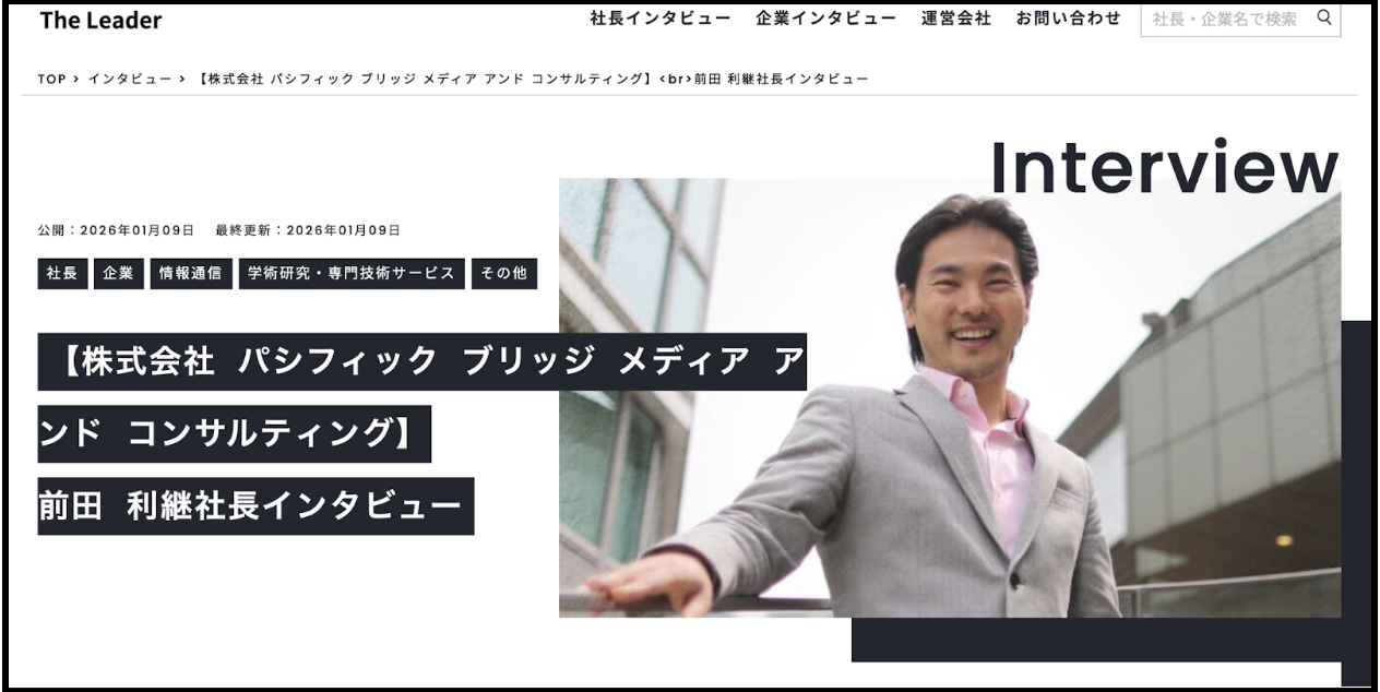 Our CEO, Toshi Maeda, was recently featured in an in-depth interview on The Leader, a CEO and corporate interview platform operated by Kaigai FX.